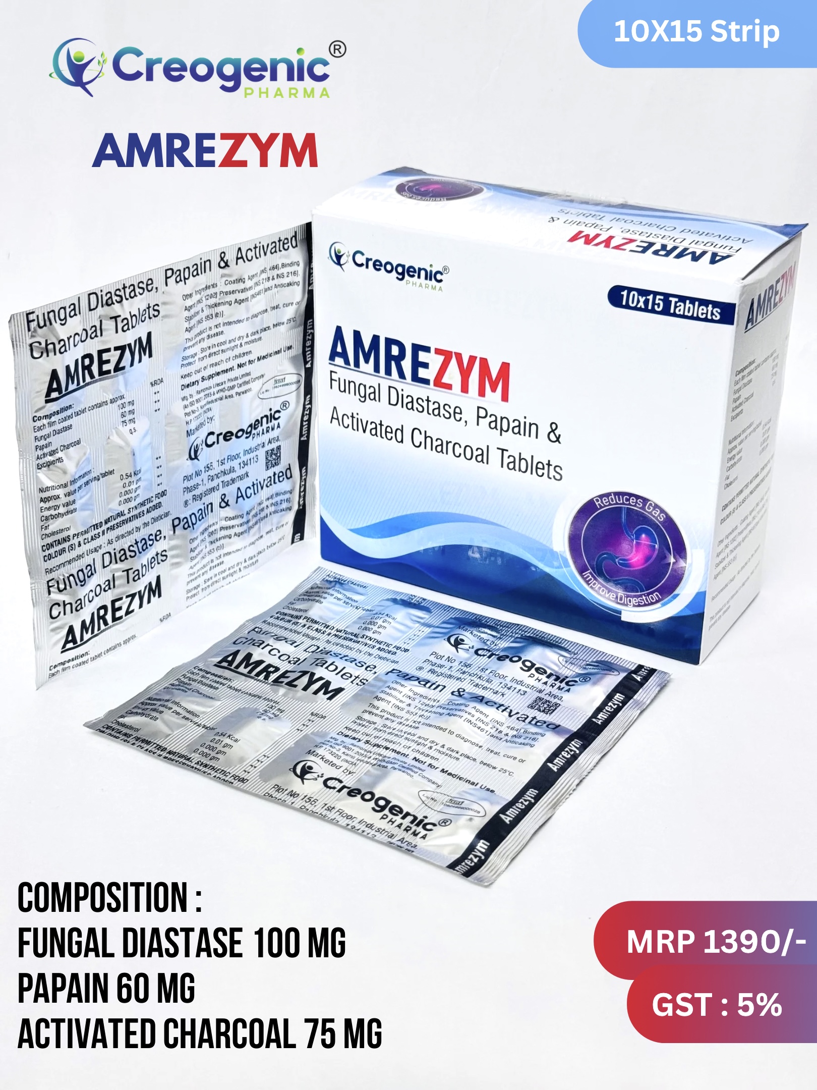 Composition: Fungal Diastase 100 MG Papain 60 MG Activated Charcoal 75 MG Tablet