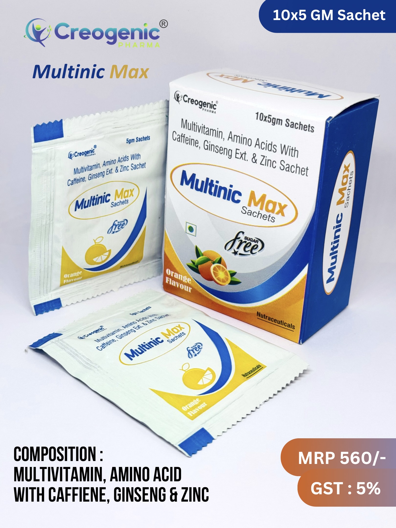 Multivitamin, Amino Acid, Caffeine, Ginseng & Zinc Sachet for energy, stamina & immunity support. WHO-GMP certified nutraceutical sachets available for pharma franchise & PCD business.