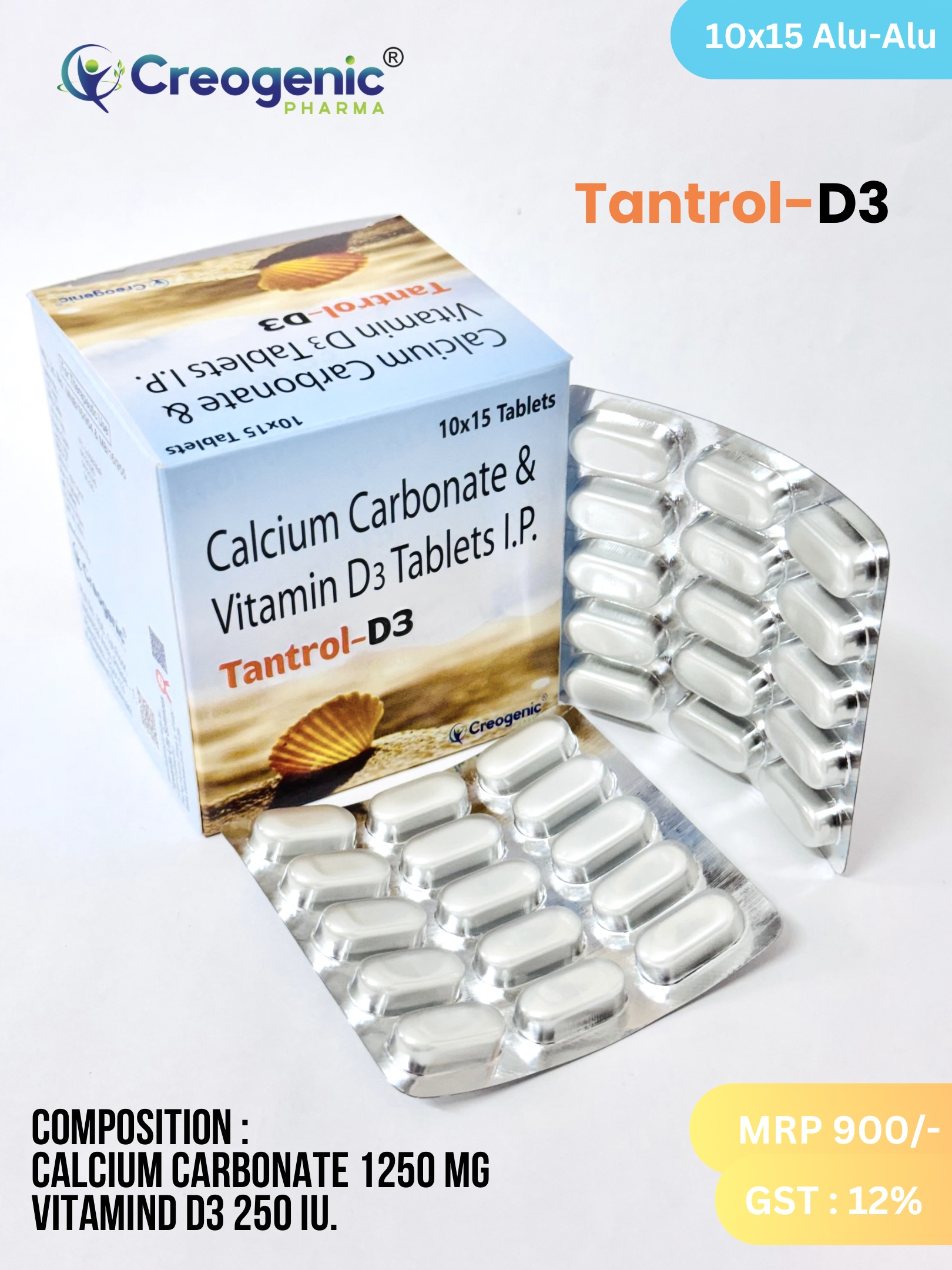 Composition: Calcium Carbonate 1250 MG + Vitamin D3 250 IU